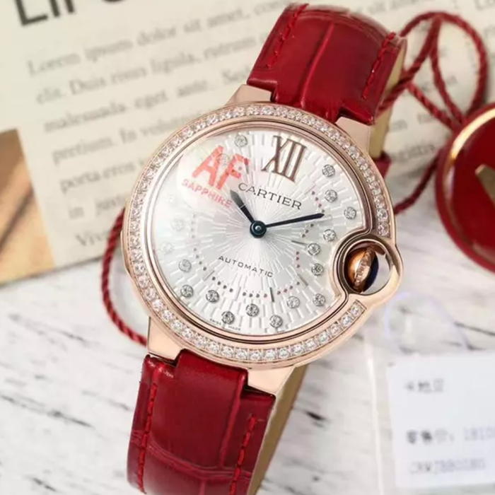 AF공장 까르띠에 발롱 블루 드 로즈골드 레드 가죽밴드 > 여성 명품시계