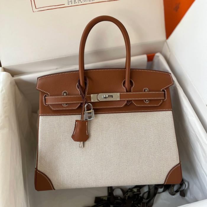 • 반수공 에르메스 버킨백 30 캔버스 골드브라운 은장