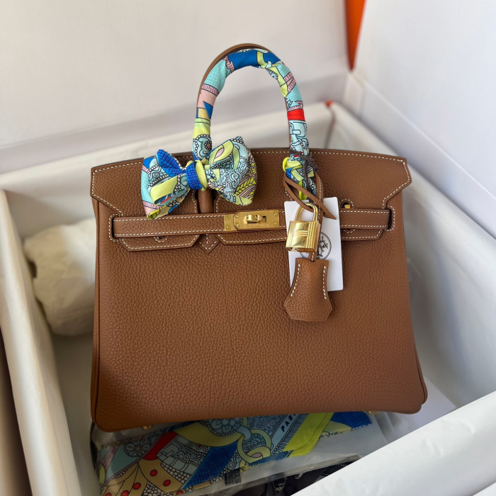 • 반수공 에르메스 버킨백 25 골드브라운 금장 토고가죽