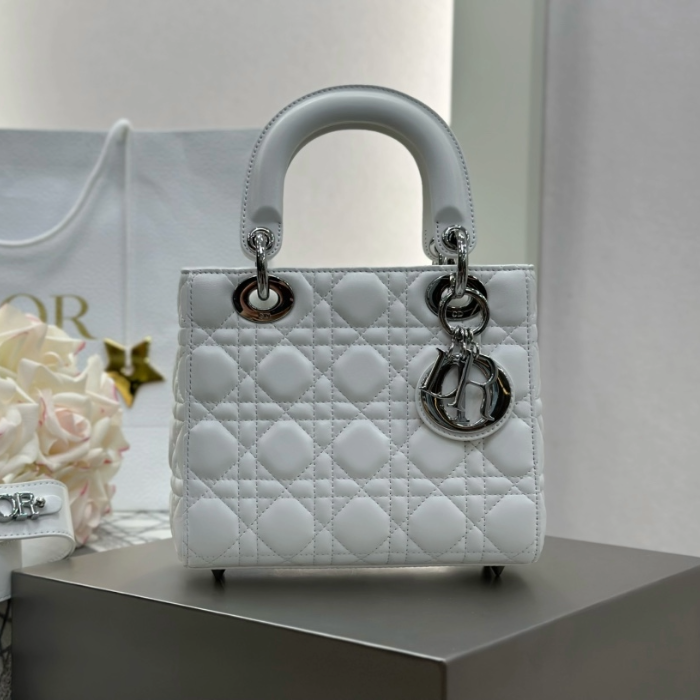 • 디올 레이디 디올 미디엄 백 ABC 스몰 화이트 실버버클