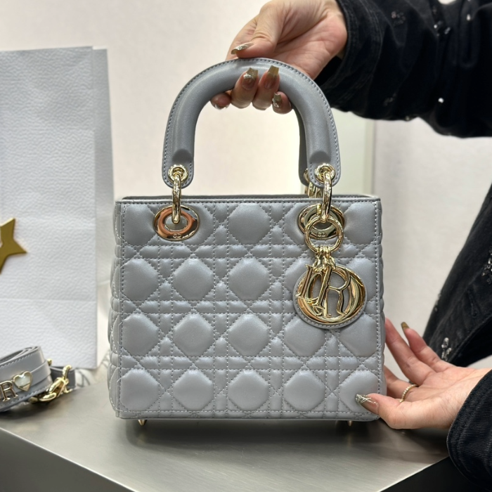 • 디올 레이디 디올 미디엄 백 ABC 스몰 펄 그레이 골드버클