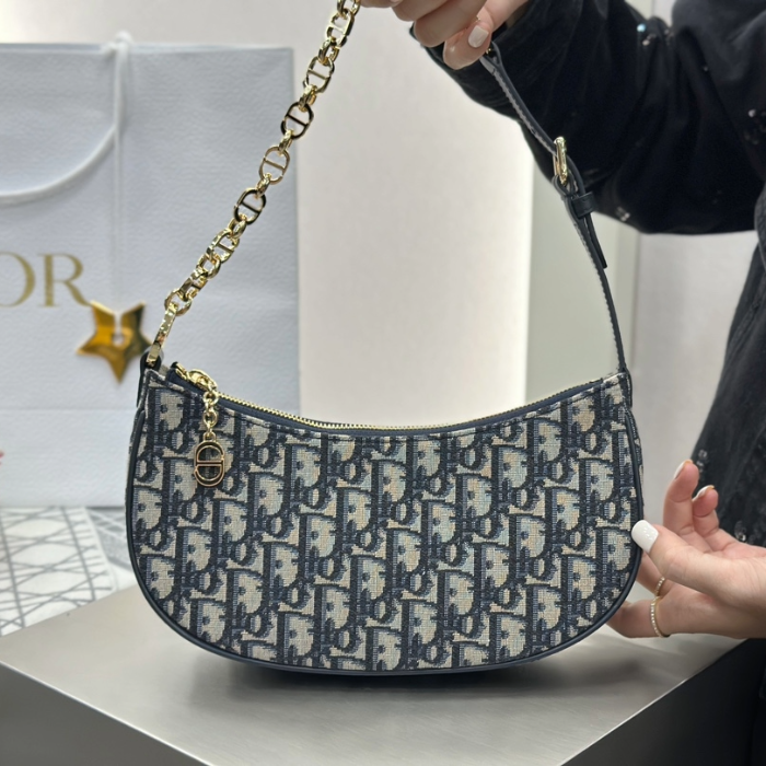 • 디올 CD 라운지 백 블루 디올 오블리크 자카드