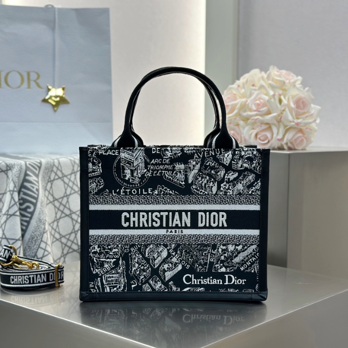 • 디올 스몰 북 토트백 블랙 화이트 플랜 드 파리 자수