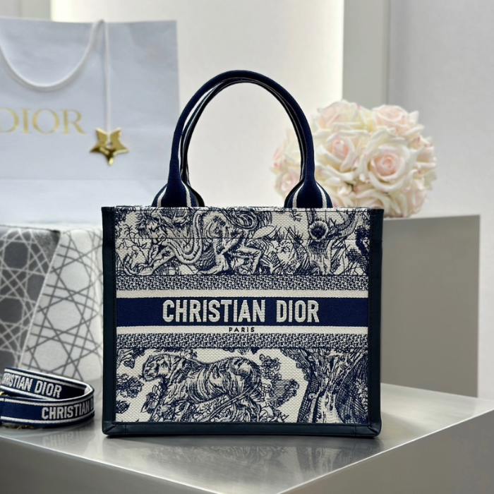 • 디올 스몰 북 토트백 트왈 드 주이 소바쥬 자수 화이트 네이비 블루