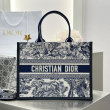 • 디올 미디엄 북 토트백 트왈 드 주이 소바쥬 자수 화이트 네이비 블루