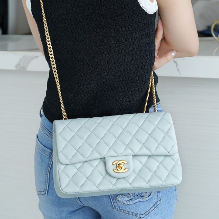 • 팬더샵 샤넬 카멜리아 플랩백 라이트 블루 램스킨 금장