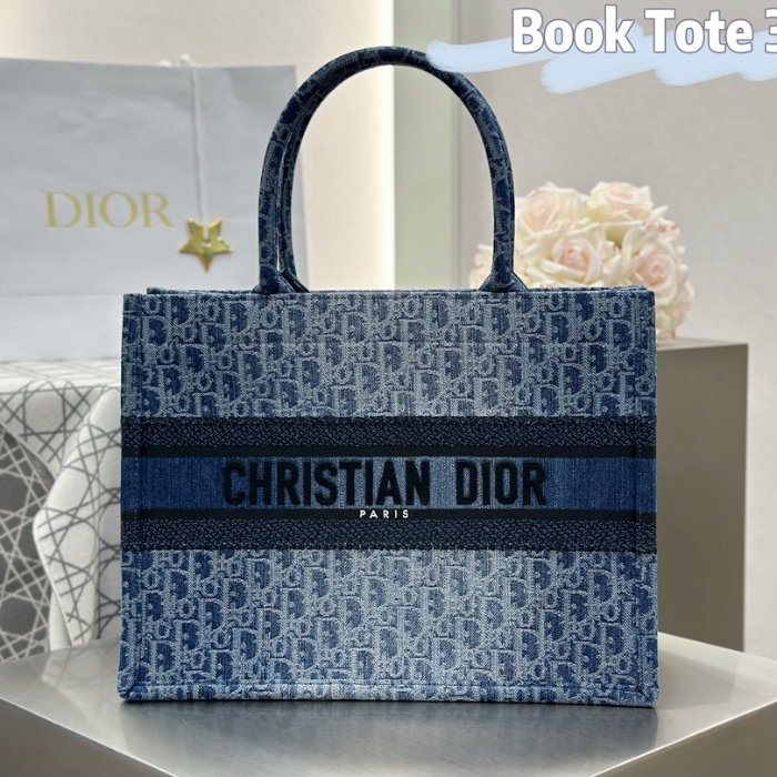 • 디올 미디엄 블루 데님 오블리크 북 토트백