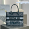 • 디올 미디엄 북 토트백 어라운드 더 월드 모티프 자수 블루 화이트