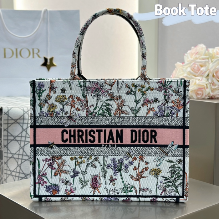 • 디올 미디엄 북 토트백 허바륨 자수 화이트 멀티컬러