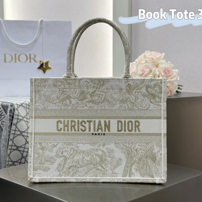 • 디올 미디엄 북 토트백 Toile de Jouy Reverse 자수 옐로우 라떼