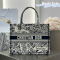 • 디올 미디엄 북 토트백 라떼 블랙 플랜 드 파리 자수