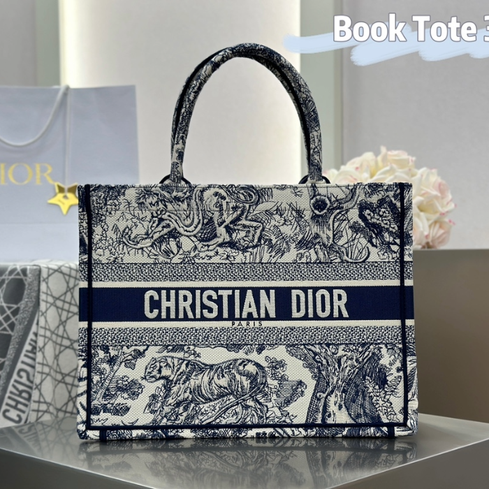 • 디올 미디엄 북 토트백 네이비 블루 트왈 드 주이 자수