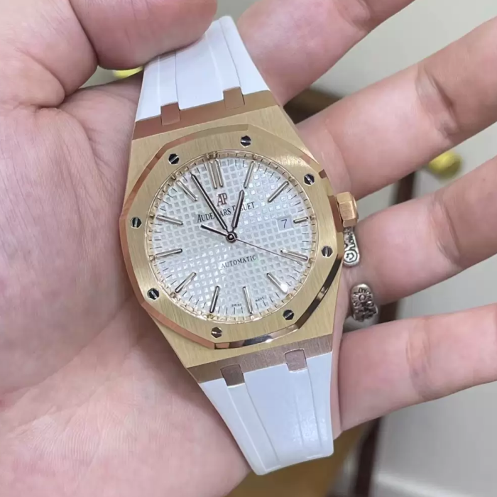 • APS공장 오데마피게 로얄오크 화이트 다이얼 옐로우 골드 금통 15400