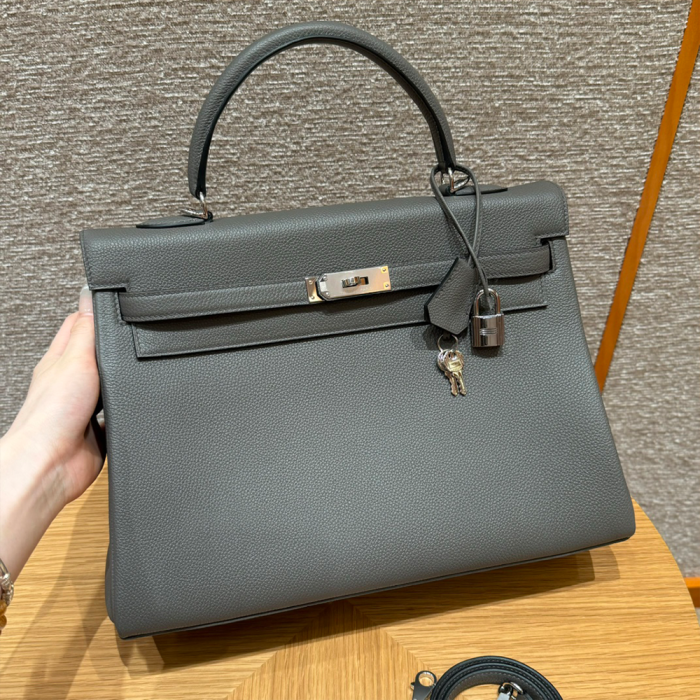 • 올수공 에르메스 켈리 35 0L/Gris Mayer 토고 가죽 실버 하드웨어