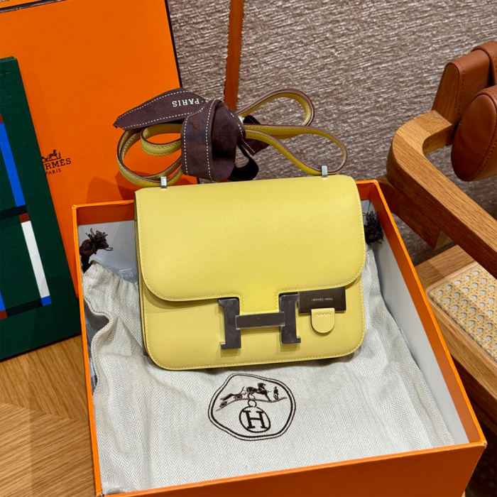 올수공 에르메스 콘스탄스 19 1Z/Jaune Poussin 스위프트 가죽 실버 하드웨어 > 여성가방