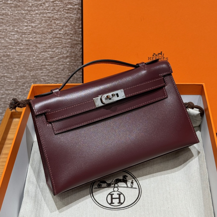 • 올수공 에르메스 미니 켈리 포쉐트 55/Rouge H 박스 가죽 실버 하드웨어