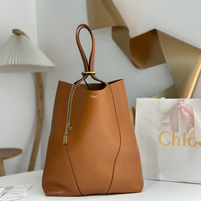 • 끌로에 그레인드 레더 스핀 라지 토트백 클레이 브라운