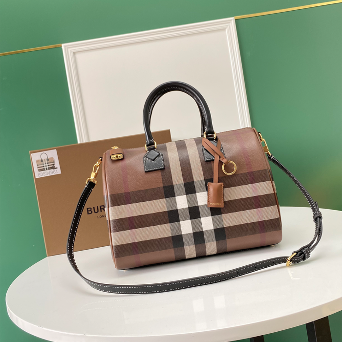 • 버버리 미디엄 체크 볼링 백 (다크 버치 브라운)