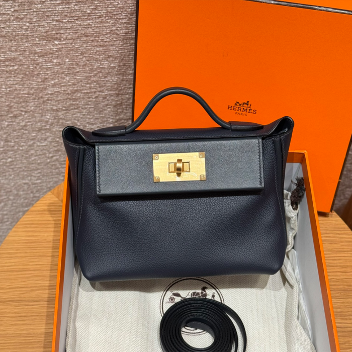 • 올수공 에르메스 켈리 2424 백 미니 Blue niut 에버컬러 골드 하드웨어