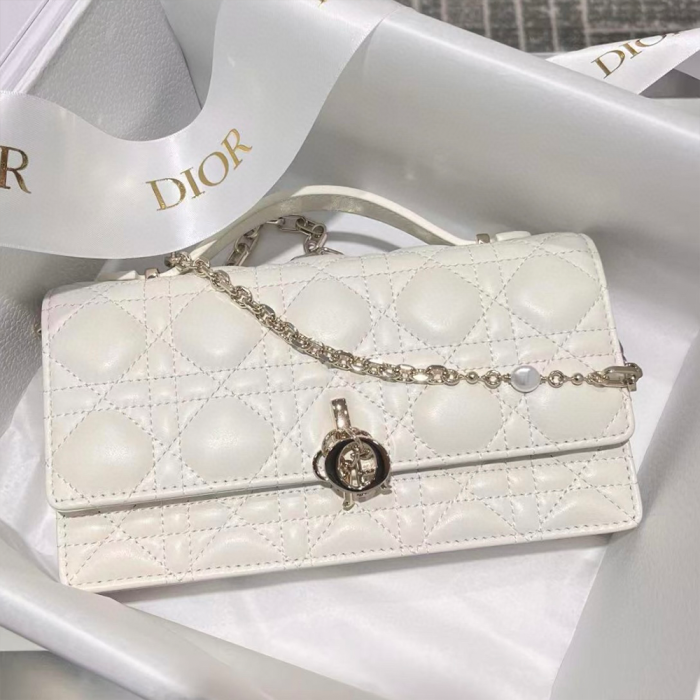 • 디올 미스 디올 미니 탑 핸들백 화이트 까나쥬 램스킨
