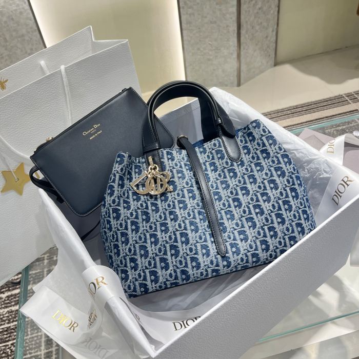 • 디올 라지 뚜주흐 백 블루 데님 디올 오블리크 자카드