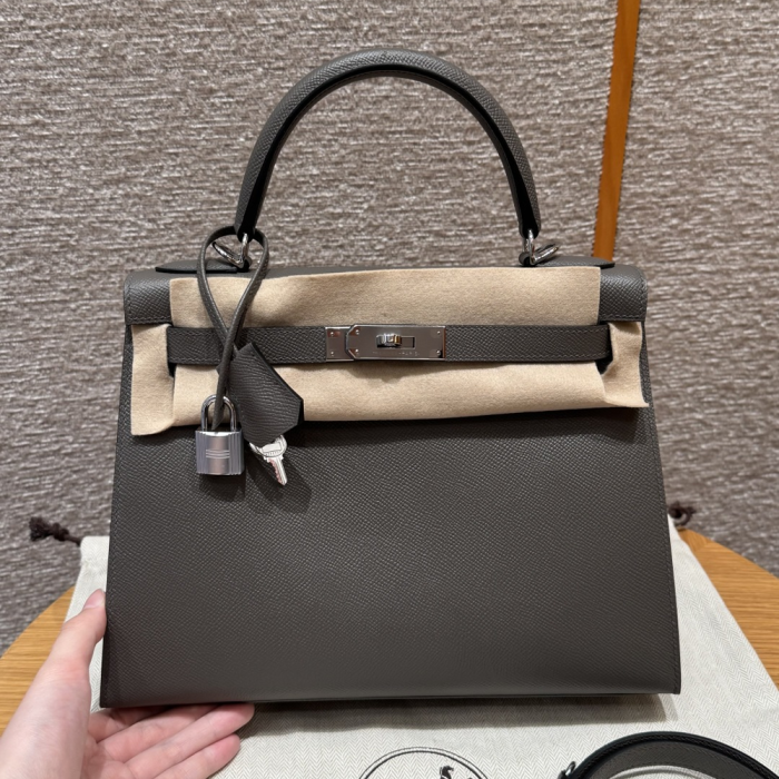 • 올수공 에르메스 켈리 32 Etain 엡송 가죽 실버 하드웨어