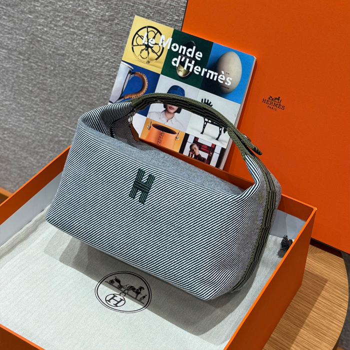 • 올수공 에르메스 브리드 어 브랙 파우치 GM Bleu Abysse 코튼 실버 하드웨어