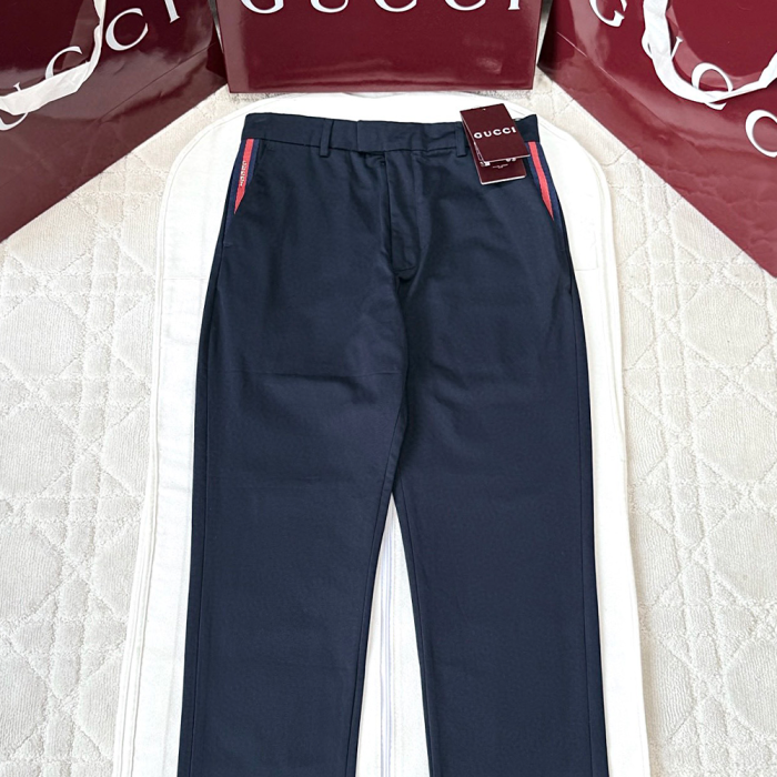 최고퀄 구찌 레드 웨빙 스트라이프 다크 블루 팬츠 > 남성의류
