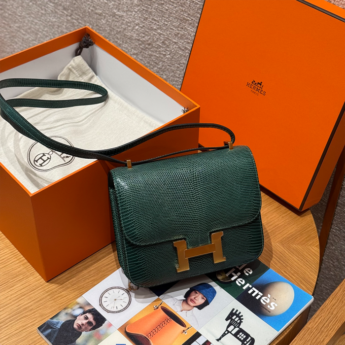 • 올수공 에르메스 콘스탄스 19 Vert cypress 리자드 가죽 골드 하드웨어