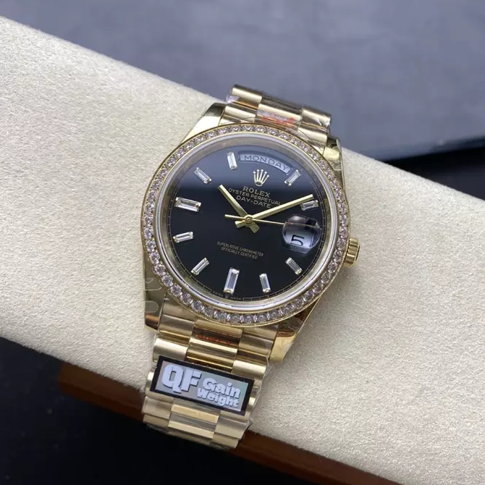 QF공장 롤렉스 데이데이트 40 블랙 바게트 다이얼 다이아 베젤 옐로우 골드 금통 228238 상품의 관련상품이에요