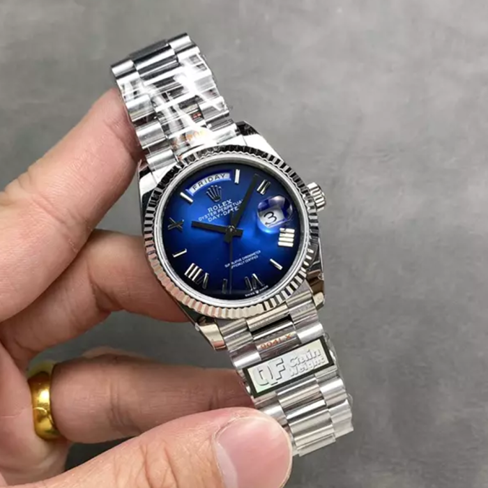 • QF공장 롤렉스 데이데이트 36 청판 옴브레 다이얼 화이트 골드 금통 128236