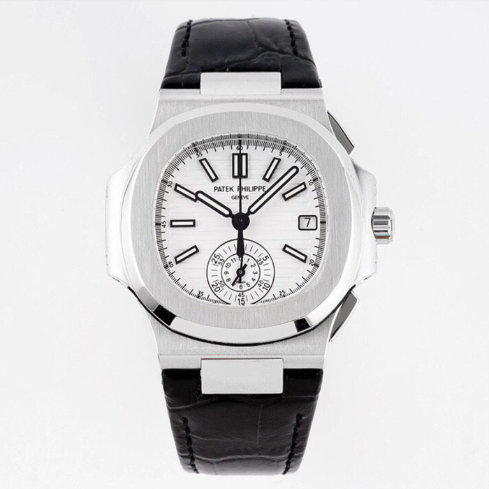 • 3K공장 파텍필립 노틸러스 크로노그래프 화이트 다이얼 가죽밴드 40mm 5980