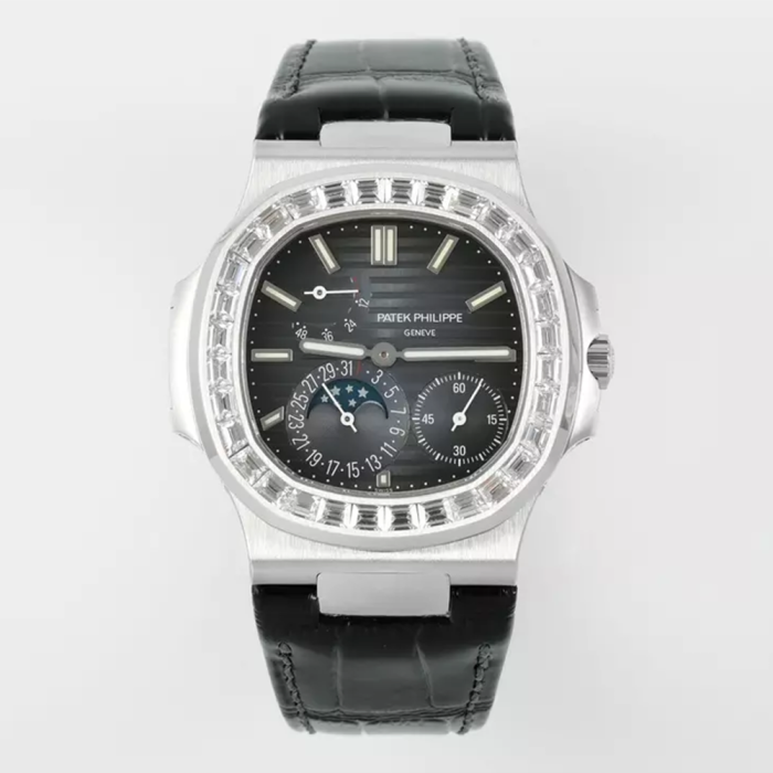 • PPF공장 파텍필립 노틸러스 문페이즈 청판 다이얼 다이아 베젤 가죽밴드 5712G