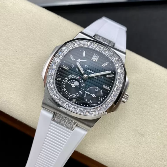 • GR공장 파텍필립 노틸러스 문페이즈 청판 다이얼 다이아 베젤 화이트 러버밴드 5712