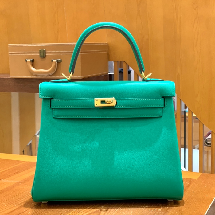 • 그린엘 에르메스 켈리 25 토고 스위프트 민트 그린 골드 버클