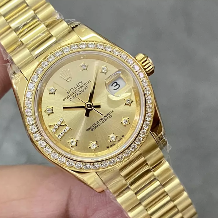GS공장 롤렉스 데이저스트 28mm 샴폐인 10P 다이얼 다이아 베젤 옐로우 골드 279173 > 여성 명품시계