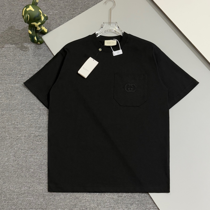 구찌 GG 자수 패치 포켓 반팔 티셔츠 블랙 > 남성의류