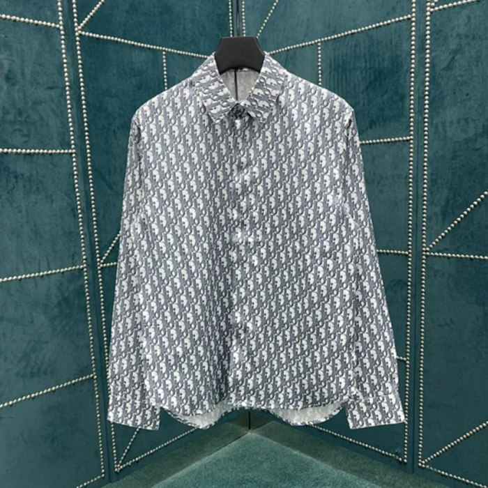 디올 오블리크 셔츠 화이트 & 블루 실크 트윌 > 남성의류