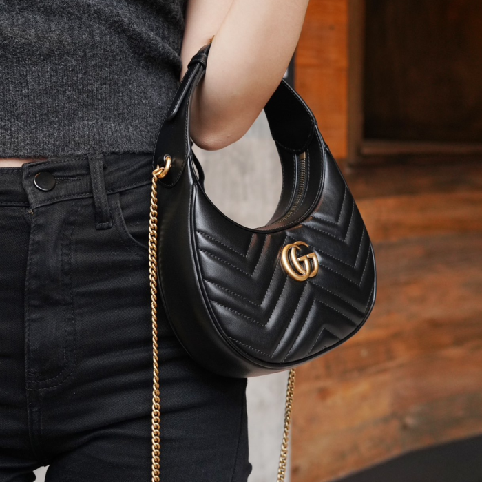 • 구찌 GG 마몽 하프문 쉐입 미니백 블랙 699514