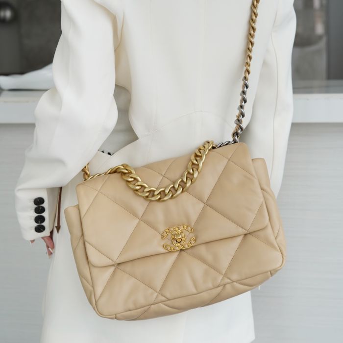 • 팬더샵 샤넬 19 미디움 핸드백 램스킨 & 골드 메탈 베이지