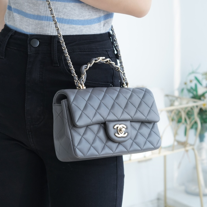 • 팬더샵 샤넬 23K 탑 핸들 클래식 플랩백 다크 그레이