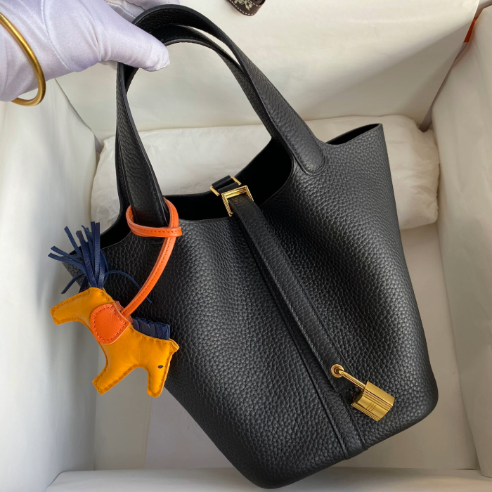 • 반수공 에르메스 피코탄 락 22 블랙 금장 소가죽