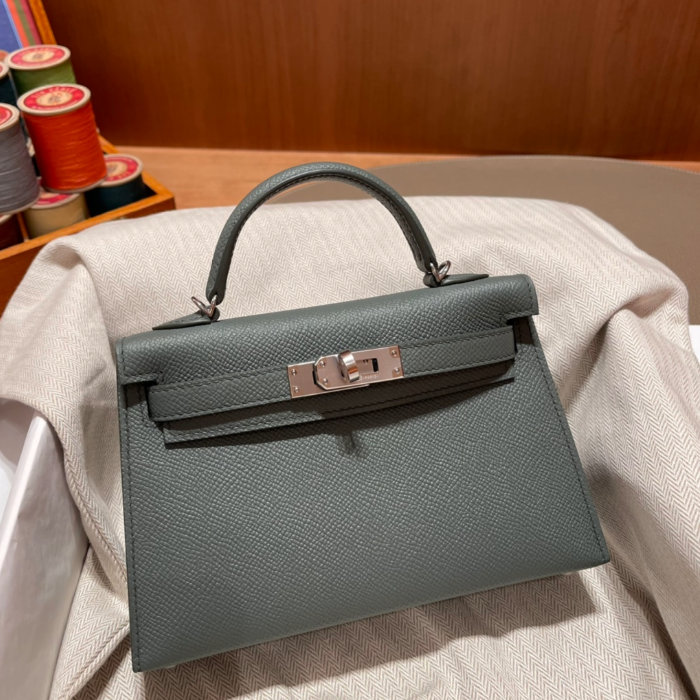 • 반수공 에르메스 미니 켈리백 그레이그린 은장 엡송