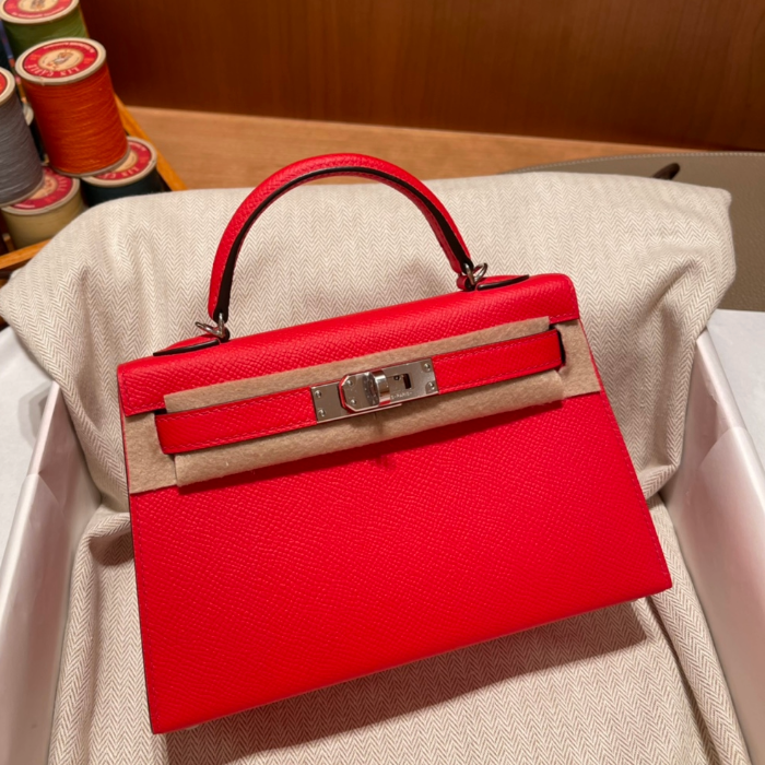 • 반수공 에르메스 미니 켈리백 레드 은장 엡송