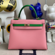 • 반수공 에르메스 켈리백 25 핑크 그린 금장 엡송