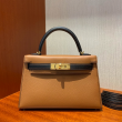 • 반수공 에르메스 미니 켈리백 20 골드브라운 블랙 금장 엡송