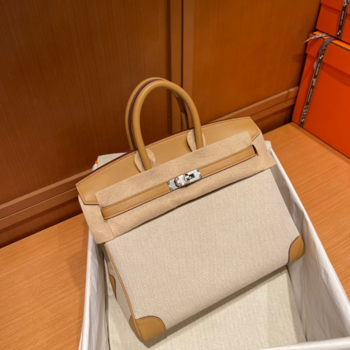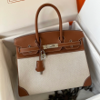 • 반수공 에르메스 버킨백 30 라이트브라운 은장 캔버스 스위프트가죽
