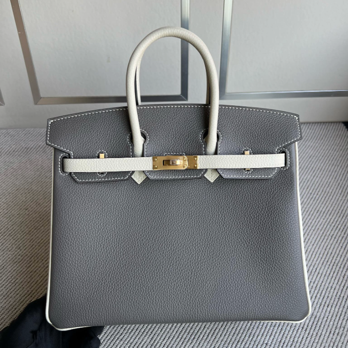• 반수공 에르메스 버킨백 25 그레이 화이트 금장 엡송