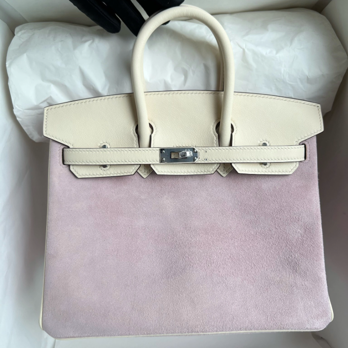 • 반수공 에르메스 버킨백 25 핑크퍼플 화이트 은장 스웨이드
