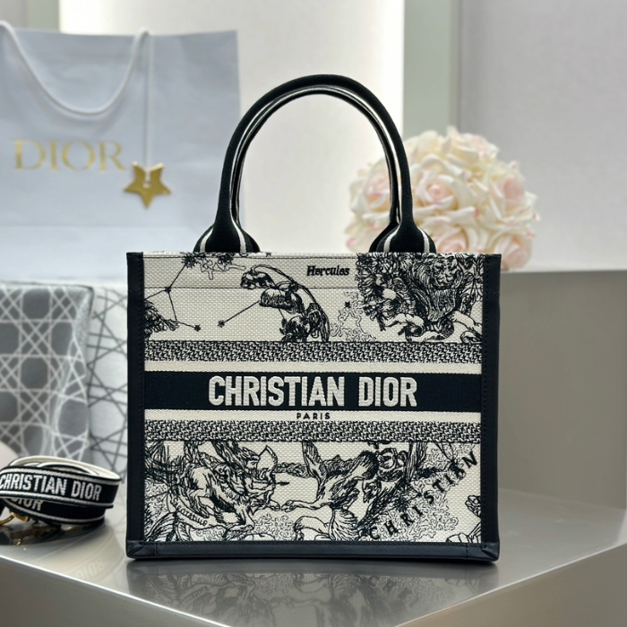 • 디올 스몰 북 토트백 조디악 자수 라떼 블랙